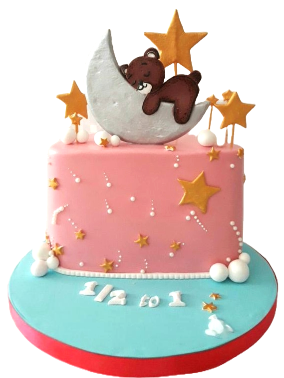 Teddy on Moon Half Birthday Cake