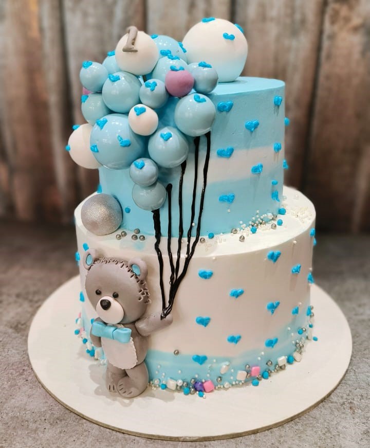 Teddy with balloon cake